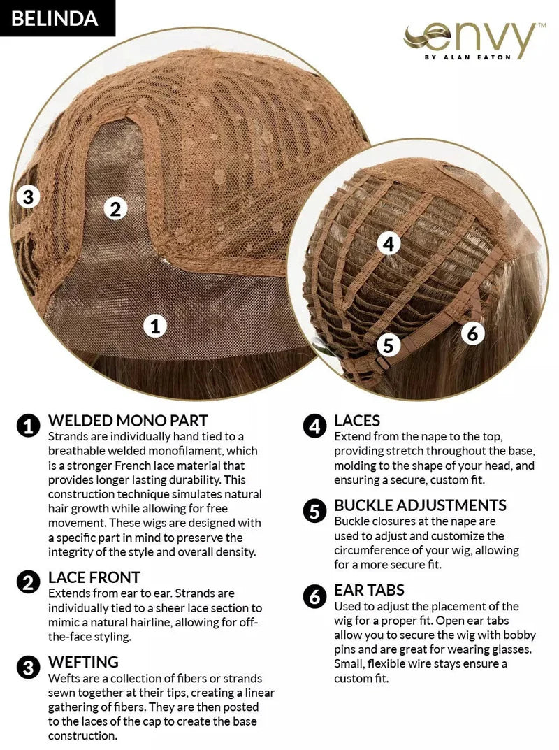 • Approx Length: Front: 8″ | Crown: 14″ | Sides: 12.25″ | Nape: 12″