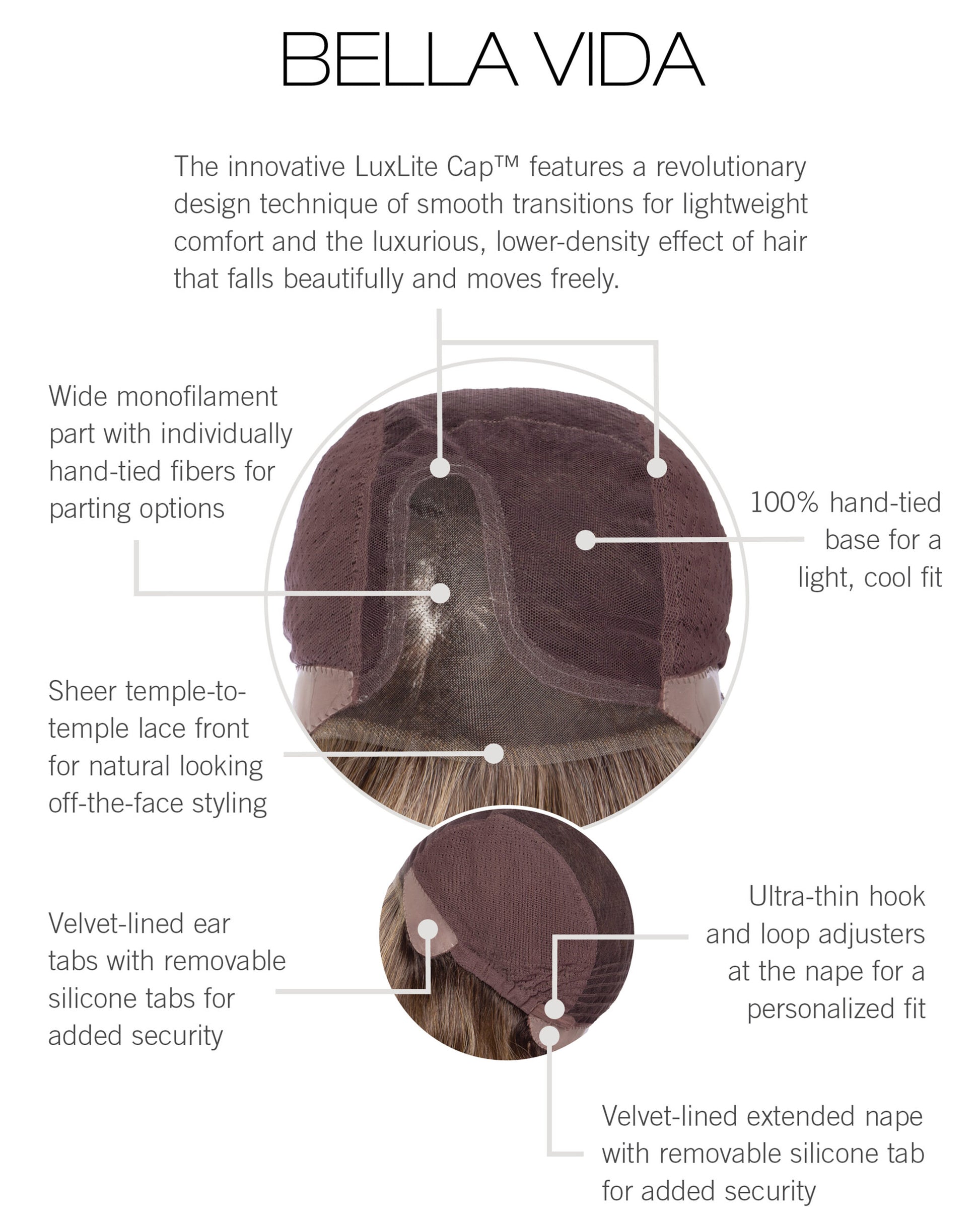 CAP DESIGN: Temple-To-Temple Lace Front, Monofilament Part, Hand-tied Base, Velvet-Lined Ear Tabs, Velvet-Lined Extended Nape