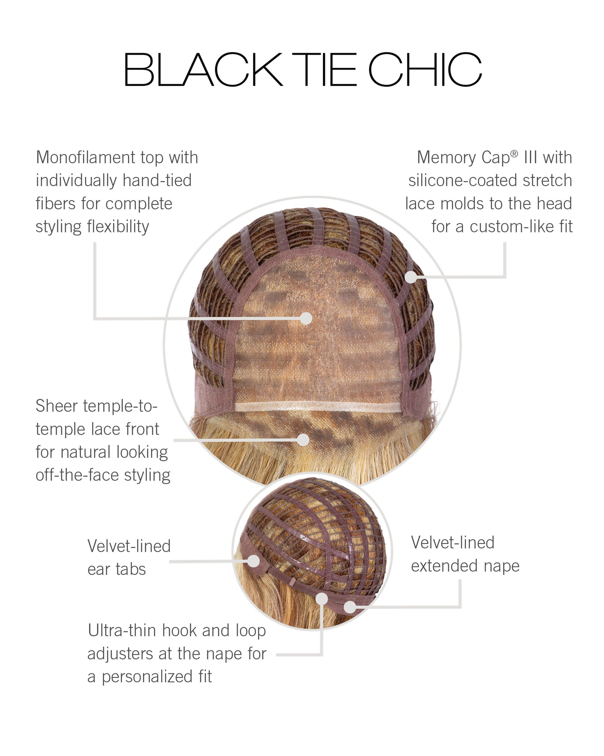 - CAP DESIGN: Temple-To-Temple Lace Front, Monofilament Top, Memory Cap® III, Velvet-Lined Ear Tabs, Velvet-Lined Extended Nape