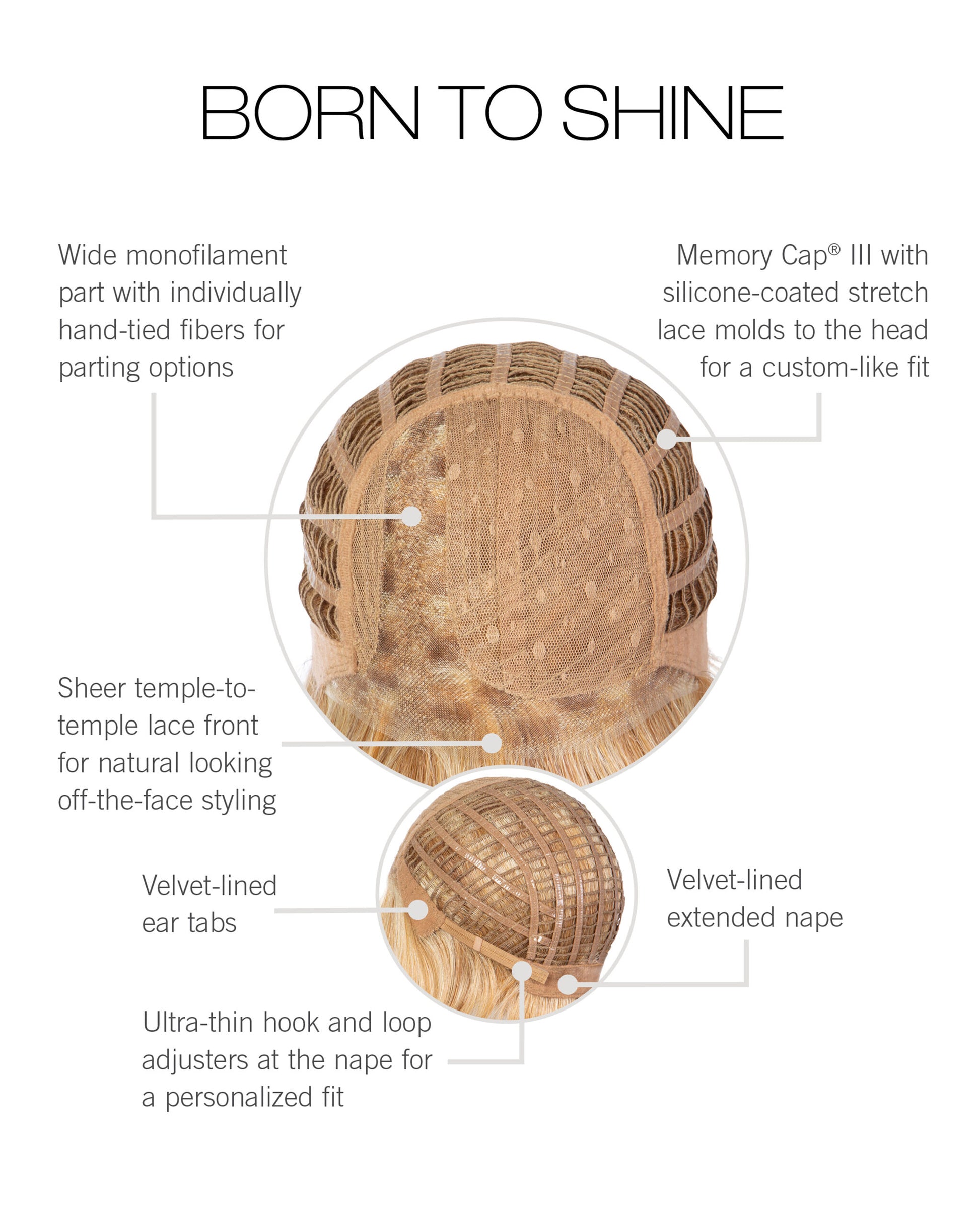 - CAP DESIGN: Temple-To-Temple Lace Front, Monofilament Top, Memory Cap® III, Velvet-Lined Ear Tabs, Velvet-Lined Extended Nape