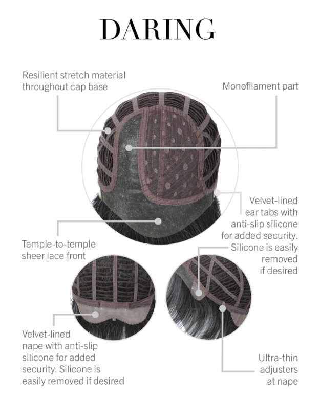 - CAP DESIGN: Temple-To-Temple Lace Front, Monofilament Part, Anti-Slip Silicone-Lined Ear Tabs, Anti-Slip Silicone-Lined Extended Nape