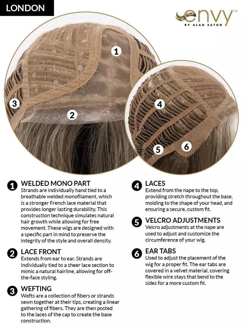 • Approx Length: Front: 10.5″ | Side: 6″ | Crown: 12″ | Nape: 2.25″