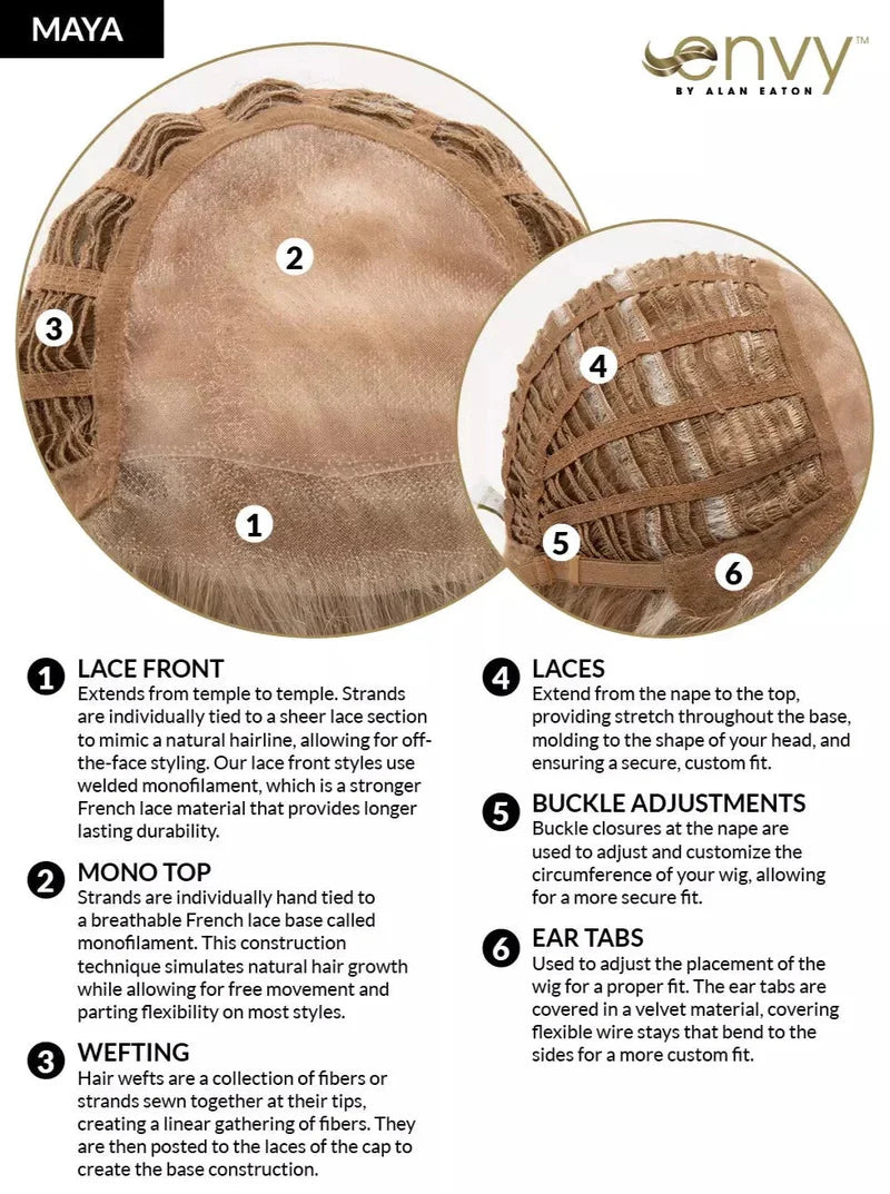 • Approx Length: Front: 13.25″ | Crown: 15″ | Sides: 14.75″ | Nape: 13.75″