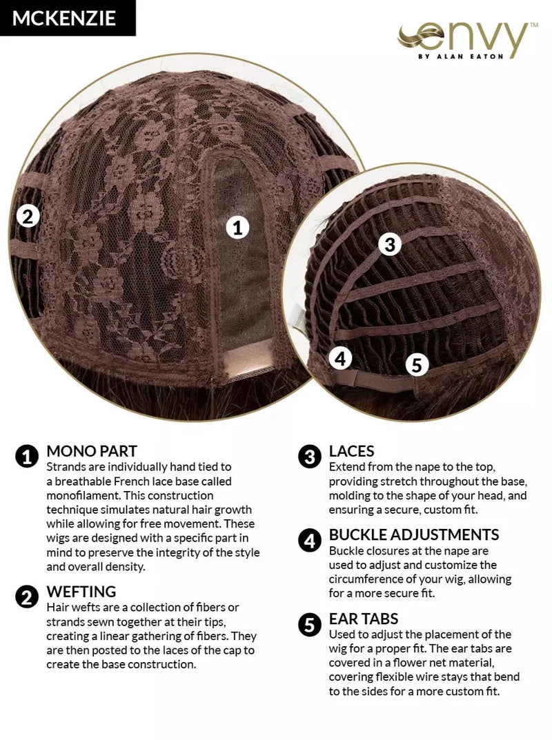 • Approx Length: Front: 5.5″ | Crown: 14.5″ | Sides: 17.75″ | Nape: 15.75″