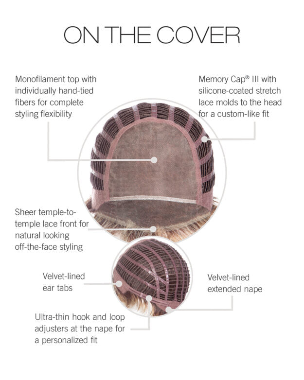 - CAP DESIGN: Temple-To-Temple Lace Front, Monofilament Top, Hand-tied Base, Velvet-Lined Ear Tabs, Velvet-Lined Extended Nape