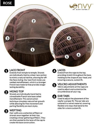 • Approx Length: Front: 6.5″ | Side: 7″ | Crown: 8″ | Nape: 7″