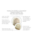 - CAP DESIGN: Temple-To-Temple Lace Front, Monofilament Top, Memory Cap, Velvet-Lined Ear Tabs, Velvet-Lined Extended Nape