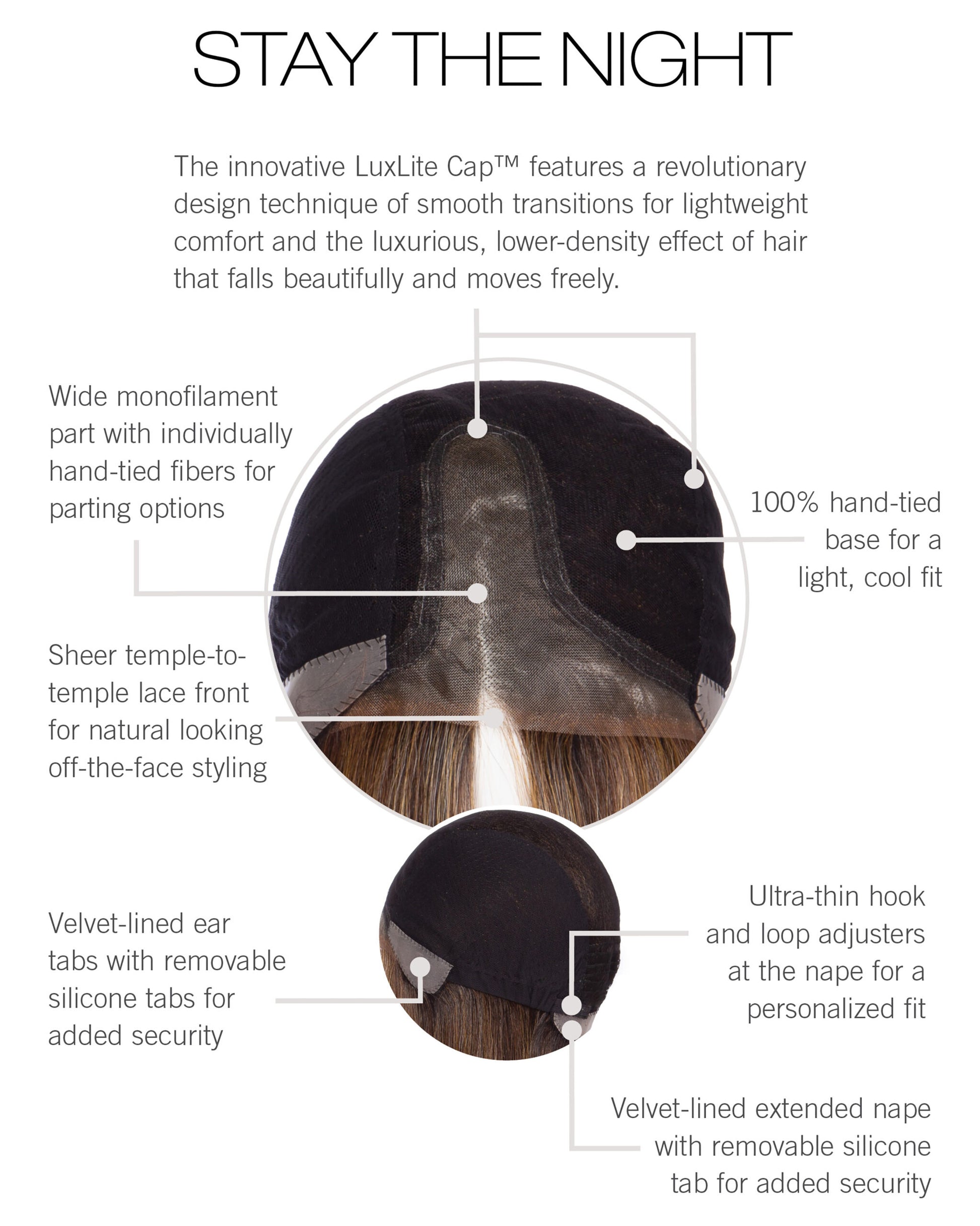 - CAP DESIGN: Temple-To-Temple Lace Front, Monofilament Part, Hand-tied Base, Velvet-Lined Ear Tabs, Velvet-Lined Extended Nape