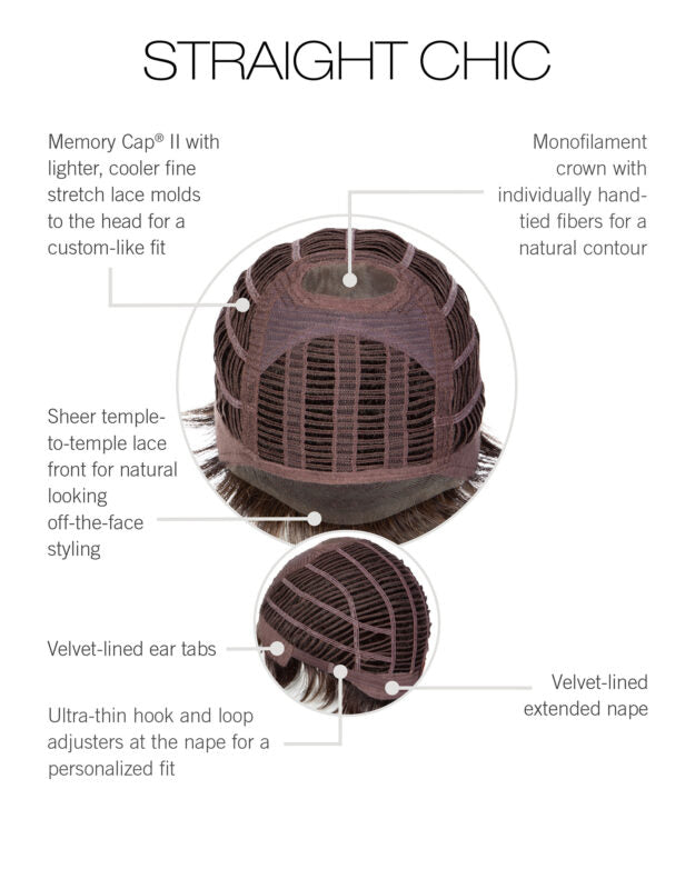 - CAP DESIGN: Temple-To-Temple Lace Front, Monofilament Top, Memory Cap® II, Velvet-Lined Ear Tabs, Velvet-Lined Extended Nape