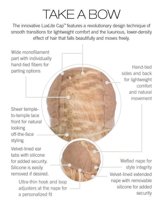 - CAP DESIGN: Temple-To-Temple Lace Front, Monofilament Top, Hand-tied Base, Velvet-Lined Ear Tabs, Velvet-Lined Extended Nape