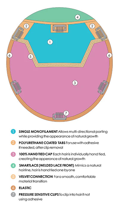 • Base Construction: Single Monofilament, Lace Front, Hand Tied