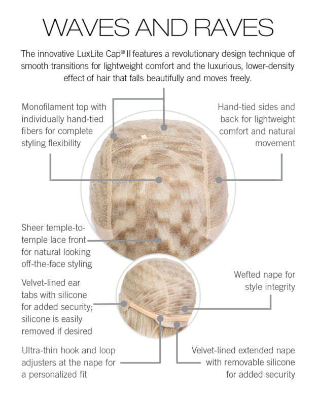 - CAP DESIGN: Temple-To-Temple Lace Front, Monofilament Top, Hand-tied Base, Anti-Slip Silicone-Lined Ear Tabs, Anti-Slip Silicone-Lined Extended Nape
